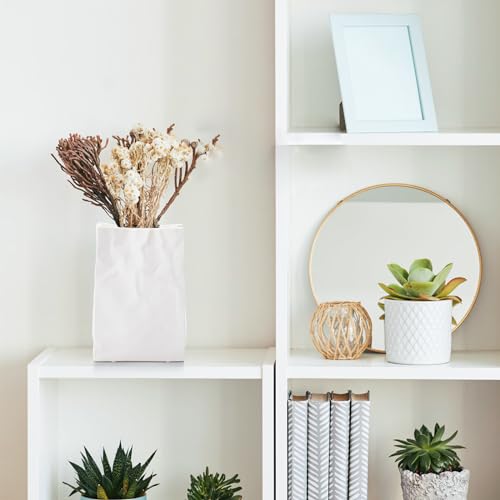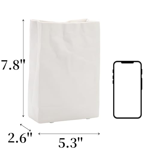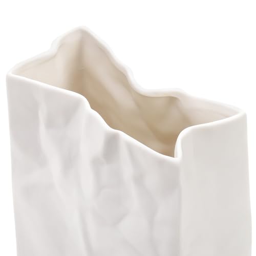 Unique Design: The minimalist boho vase looks like a paper bag that was accidentally crumpled by someone, but it is actually an artistic design. And the surface of our white ceramic vase is matt, which looks more textured and beautiful.