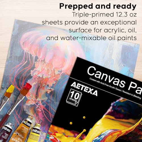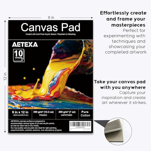 AETEXA Canvas Paper Pad, 9”x12” Canvas Pad, 10 Sheets, 12.3-oz Gesso, Glue-Bound, Art Supplies for Adults and Teens, for Acrylic Pouring and Oil Painting.