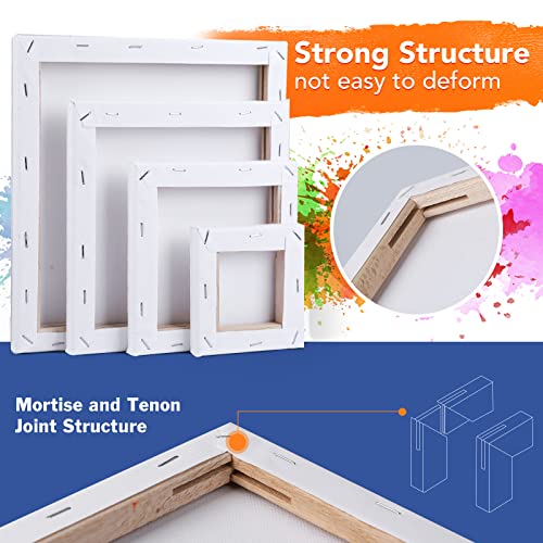 Stretched Canvases for Painting, 8PCS Multi Pack Square Canvas 4×4”, 6×6”, 8×8”, 10×10”(2 of Each), Acid-Free Wood Frame Blank Canvas, Art Canvas Pre Primed for Acrylic, Oil Painting, Tempera.