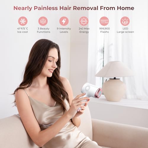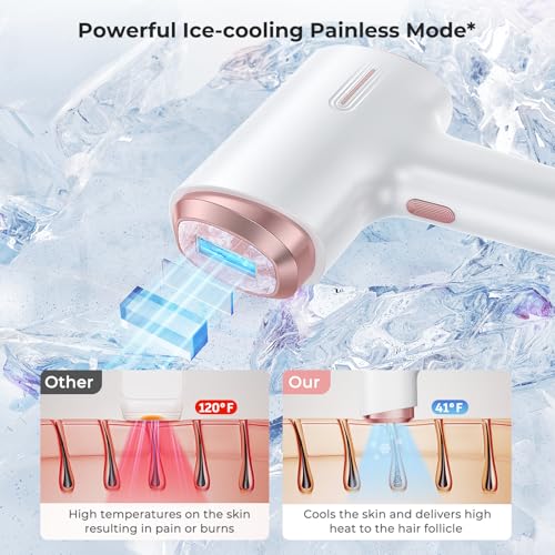 Laser Hair Removal for Women & Men, 45°F Ice-Cooling Contact, Safe & Virtually Painless Alternative to Salon IPL Hair Removal Device, Long-Lasting Hair Removal from Home, with Razor & Glasses